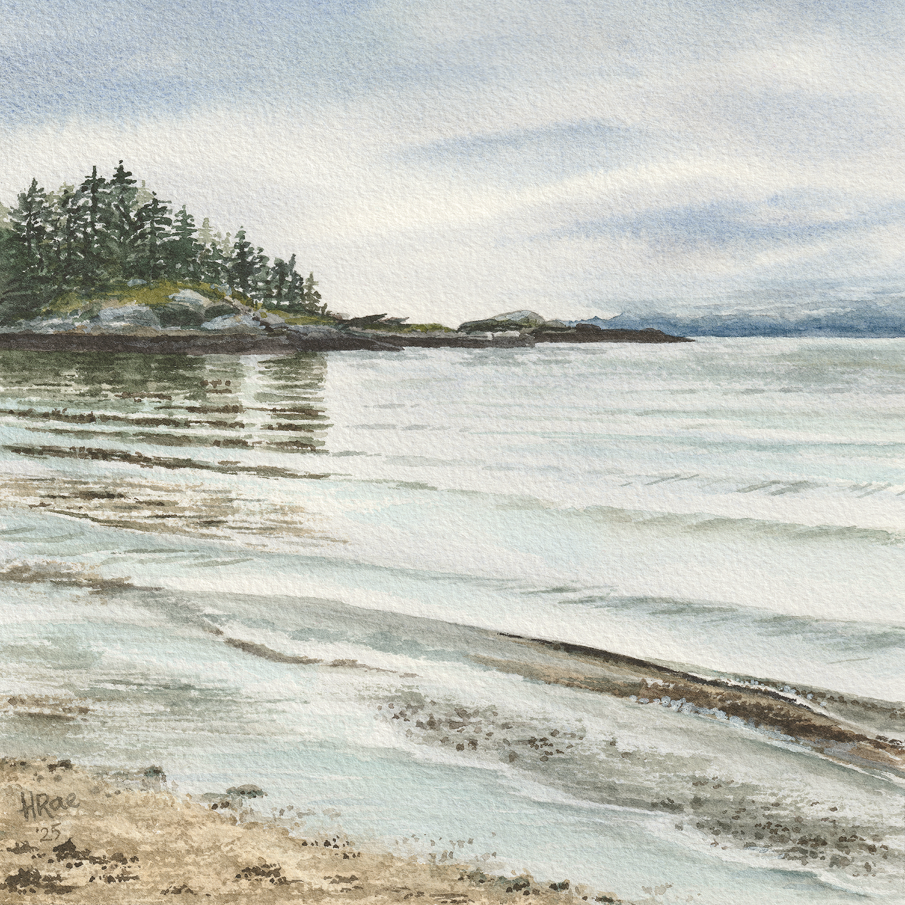 A calm afternoon at Lang Bay Beach on the Sunshine Coast. The tide was out and the waves were beautiful and subtle as they kissed the shoreline.